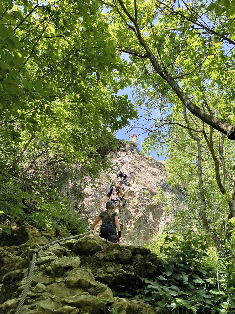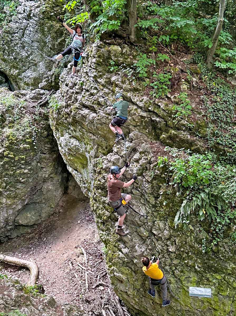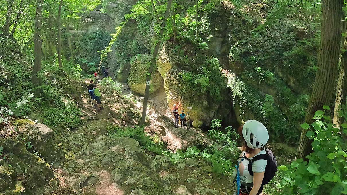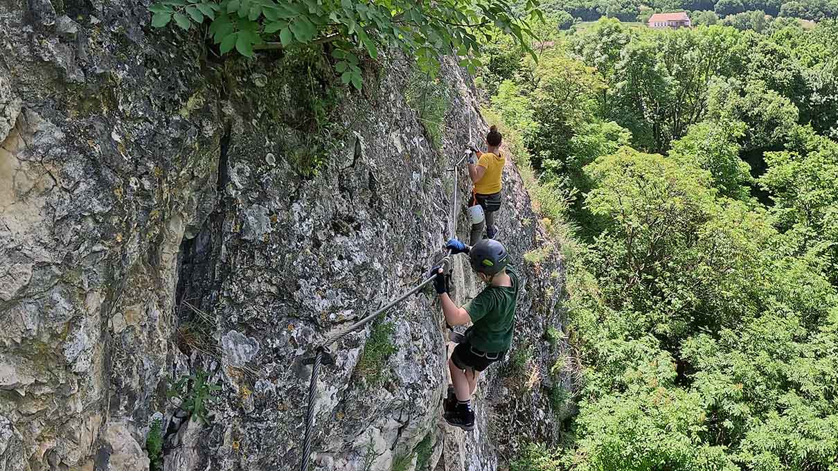 🥾 A cseszneki via ferrata a Bakonyban, a vár sziklafalainál kialakított helyszín. Itt most az Ostromlók útja (C) és a Várpanoráma út (D) pályáit mutatjuk be, a területen további vonalak is vannak. 🌄🧭