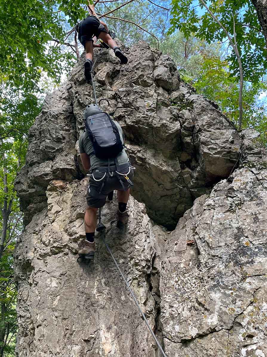 🥾 A Cuha-völgy via ferrata a Bakonyban, Vinye térségében található több útvonalból álló helyszín. Jelen leírás a Mohos Csitri (B) és a Bucsek Henrik Emlékút (C) pályáit foglalja össze; a völgyben további ferraták is vannak külön topókon. 🌄🧭
