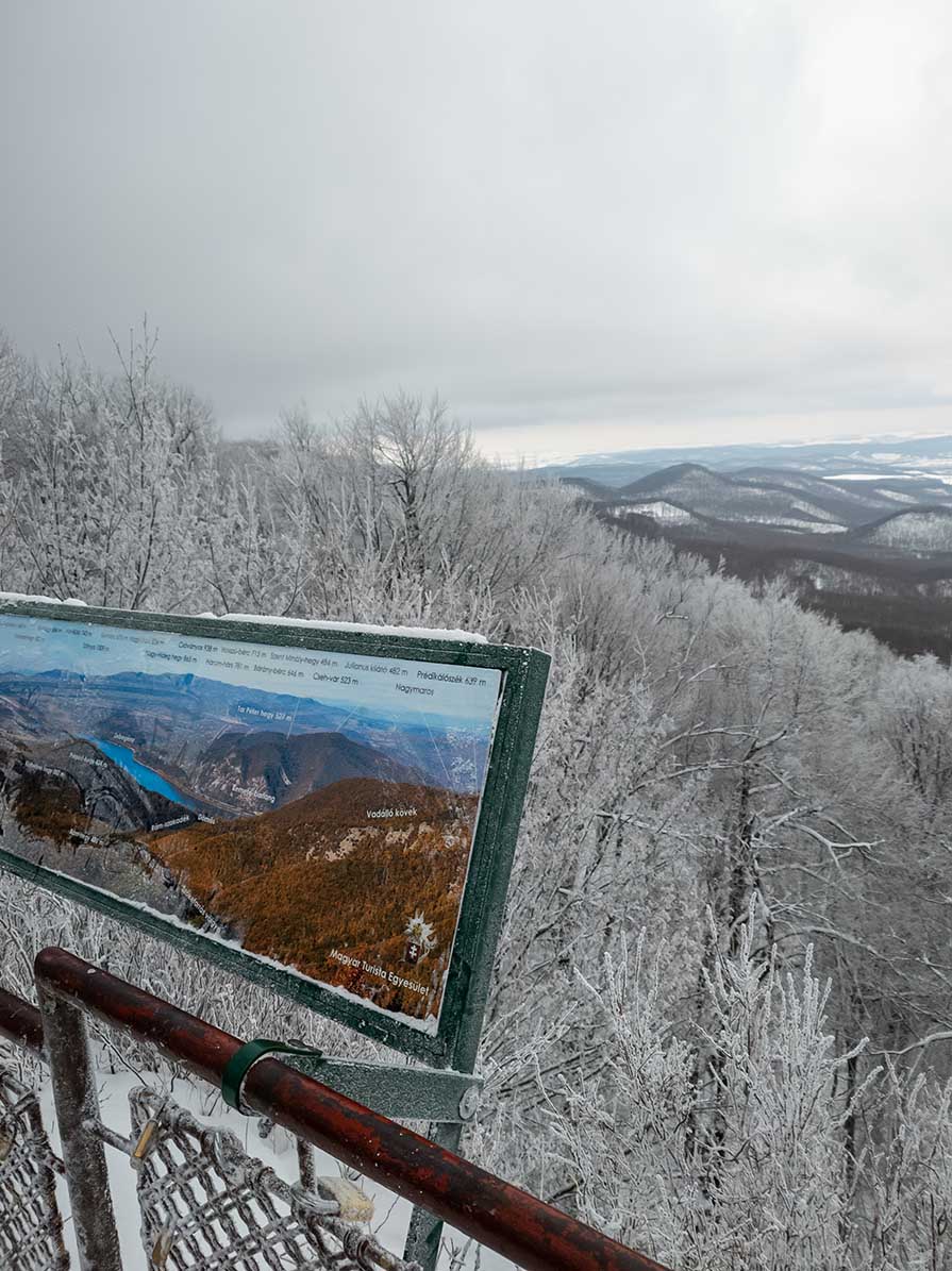 🚶♂️ A körtúra sárga jelzésen halad, és bár rövid, a terepviszonyok miatt sportos odafigyelést igényel. Télen a csúszásgátló (hómacska) és a túrabot nemcsak ajánlott, hanem szinte kötelező a balesetmentes haladáshoz. A parkolás a tetőn megoldott (400 Ft/óra vagy 2000 Ft/nap), a túra végén pedig jól esik a forró tea a menedékháznál. Rövid, de intenzív téli élmény. 🇭🇺