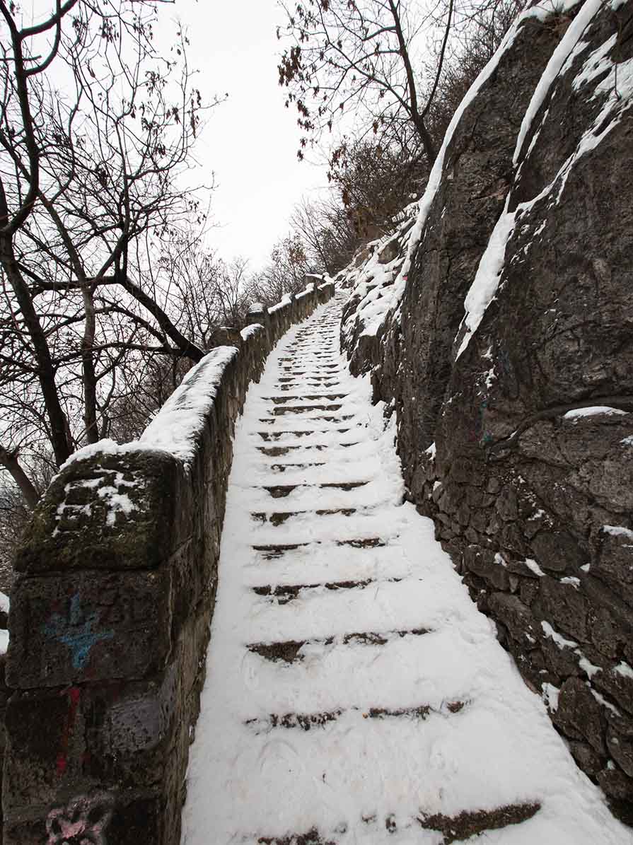 Az út mentén számos pad és korlát található, a városi környezet miatt eltévedni lehetetlen; a burkolat végig szilárd, ám télen a lépcsőkön csúszós, jeges szakaszokra fokozottan figyelni kell! A biztonságos haladás érdekében a bordázott talpú téli lábbeli – és a meredekebb szakaszokon a hómacska – használata a városi aszfalt ellenére is erősen ajánlott. 🥾🏔️