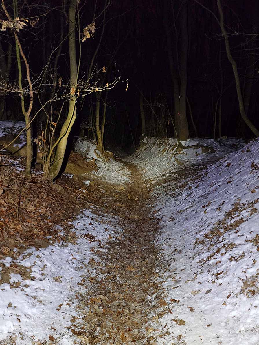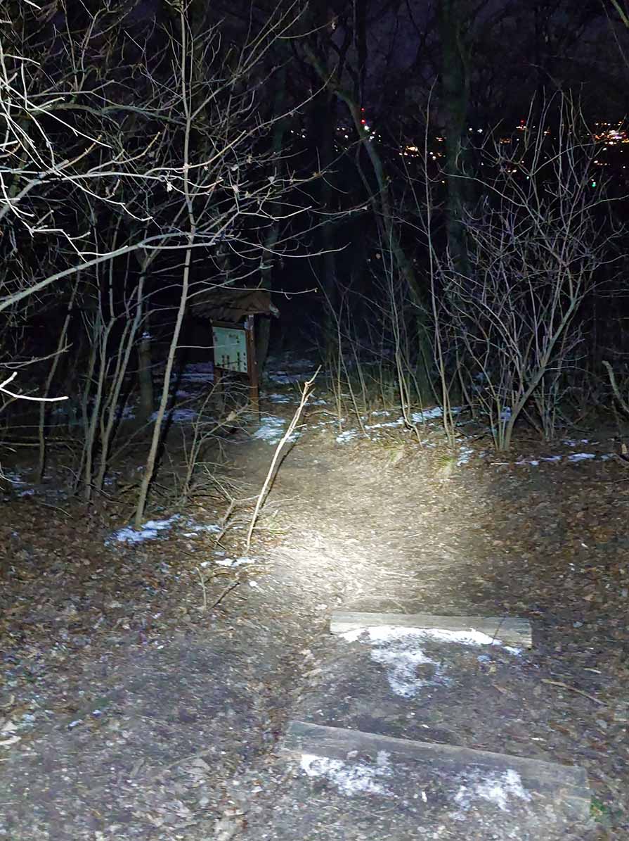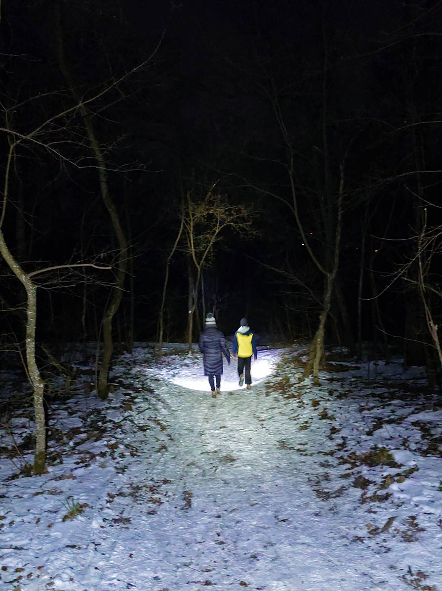 Közvilágítás csak a túra elején és végén van, a belső erdei részek teljes sötétségbe fordulnak, így a zseblámpa vagy fejlámpa kötelező felszerelés 🔦