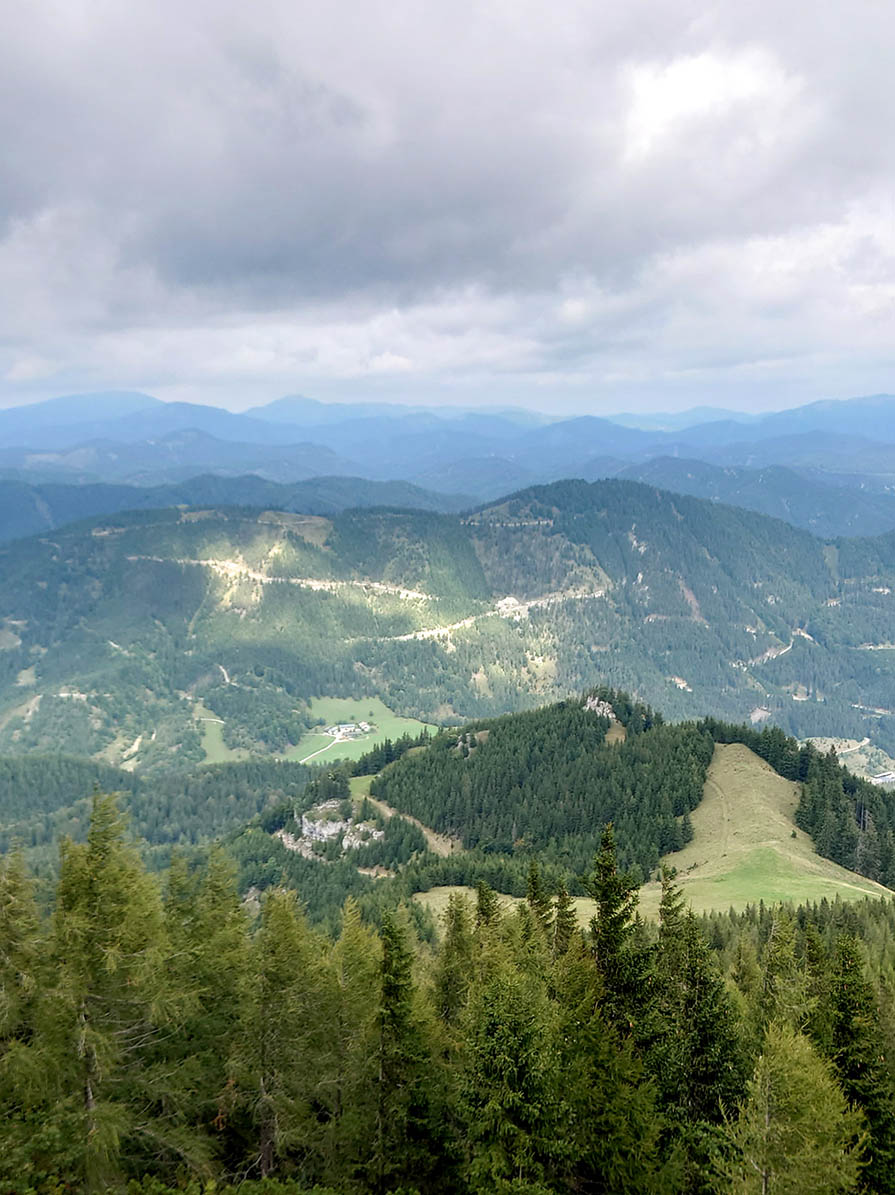🥾 A Klosterwappen (2076 m) Alsó Ausztria legmagasabb csúcsa a Schneeberg tömbjén, klasszikus panorámás hegyi túra. A Losenheim fölötti erdők után egyre nyitottabb területekre lehet feljutni, magasabban pedig köves, sziklás szakaszok következnek, több ponton rálátással a Rax és a Semmering irányába. A felső zónában nyílt, szeles magashegyi terep jellemző, messzire beláthatóak a mély völgyek és a hosszú gerincek 🌿⛰️.
