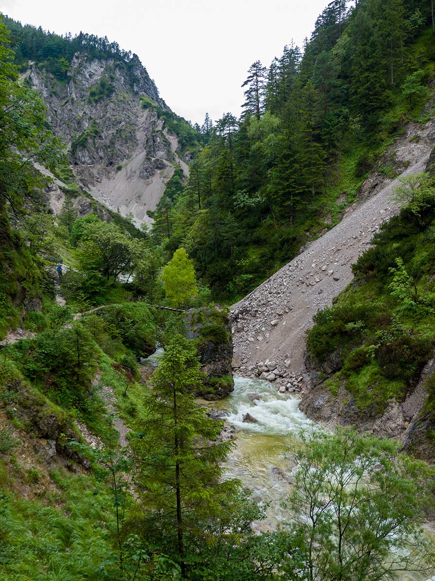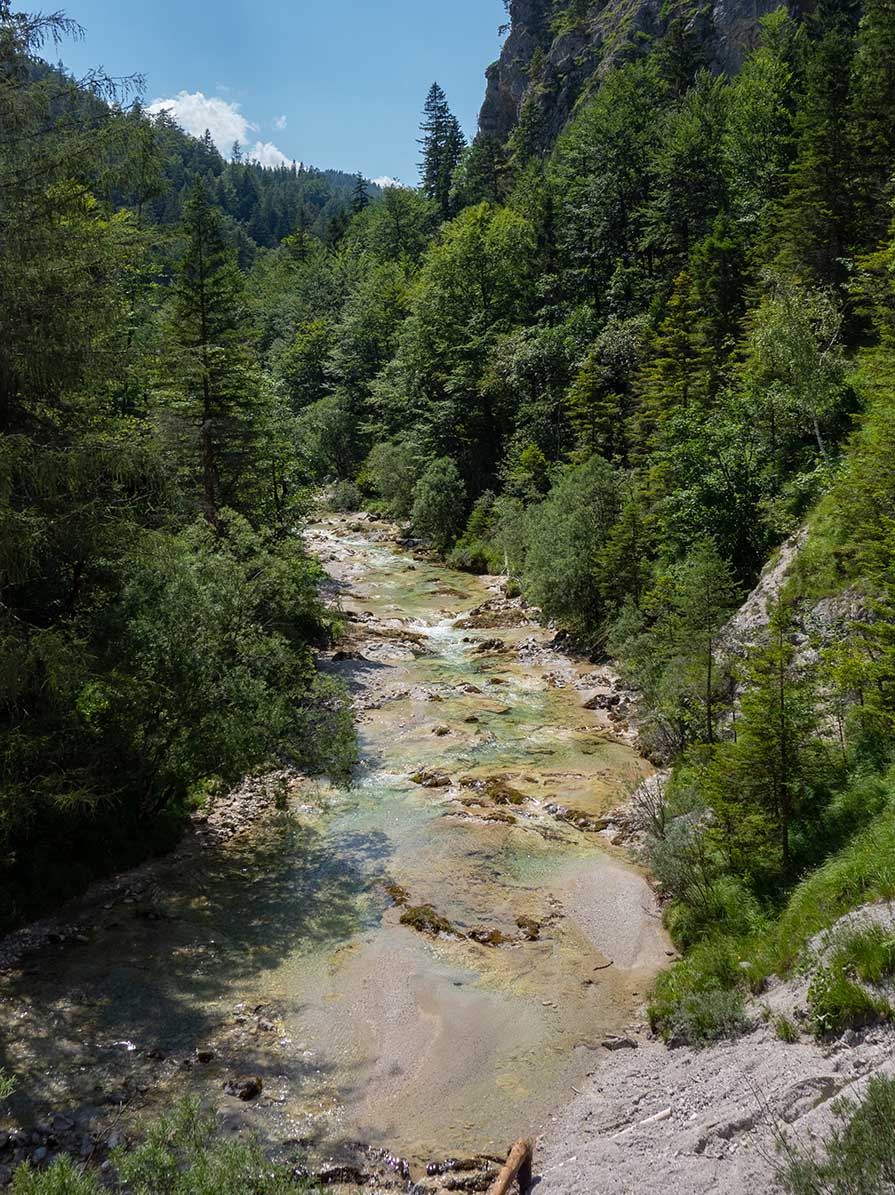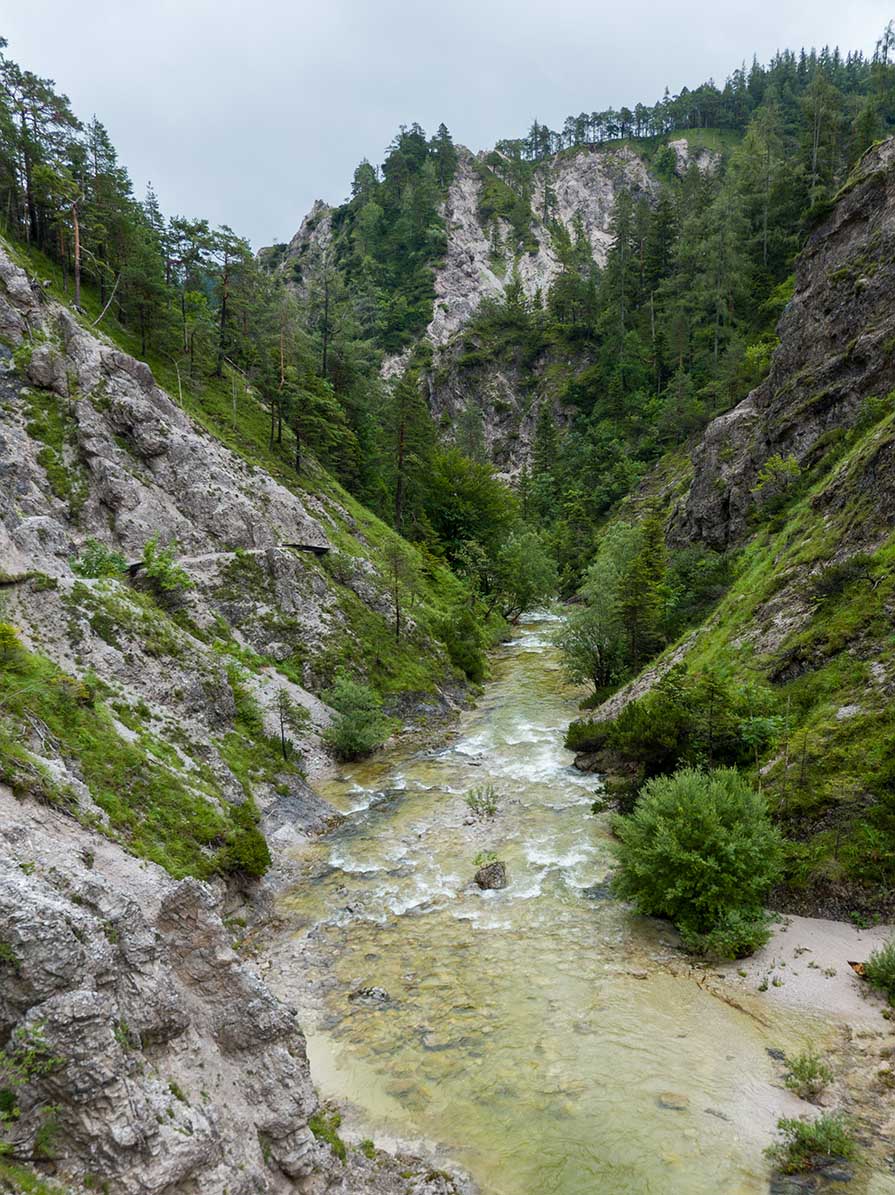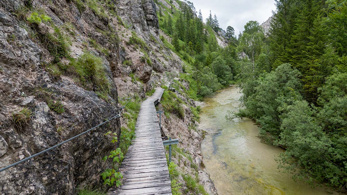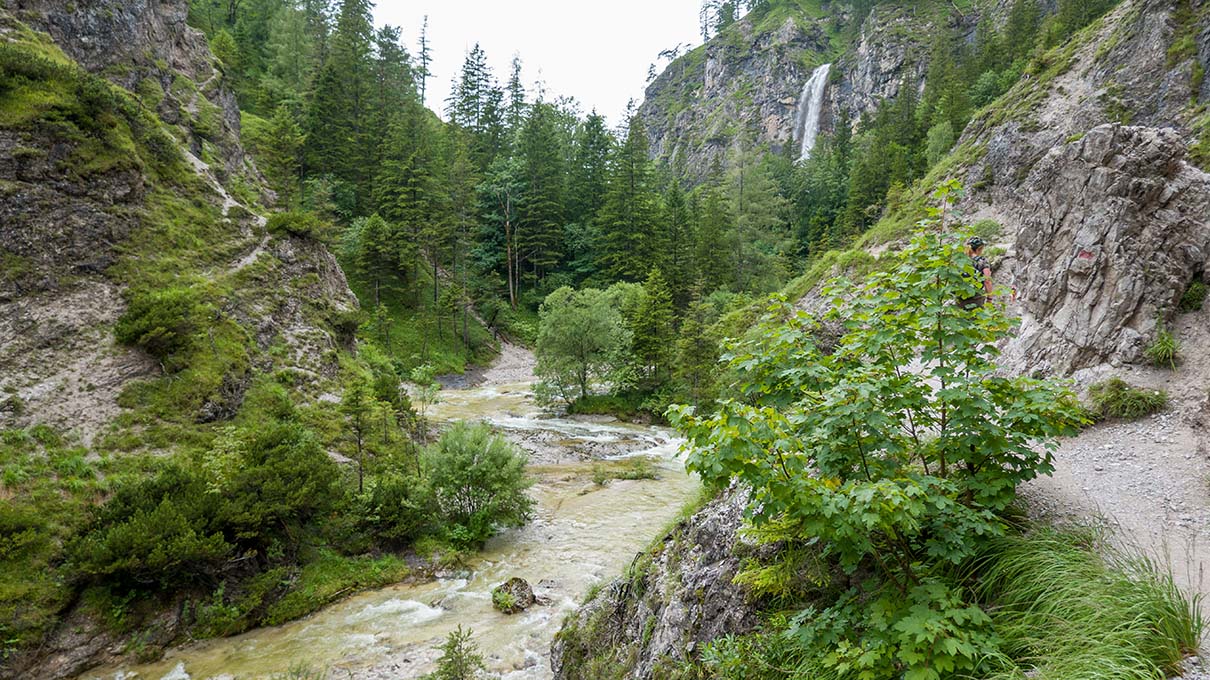 A völgyben a patak mentén halad az út, keskeny pallókkal és fahidakkal. A Miryfall és a Lassingfall mellett vezet az ösvény, félúton az Ötscherhias hütte kínál pihenőt és ételt is.