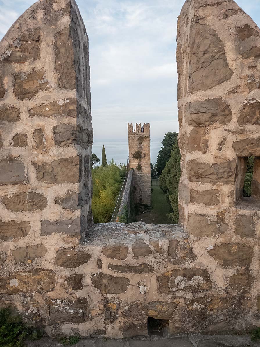🚶‍♂️ Táv 4,2 km, szintemelkedés 55 m, könnyű városi séta jól jelzett útvonalon. Jó fotópont a harangtorony erkélye, a városfal felső szintje és a Punta vége. 🇸🇮
