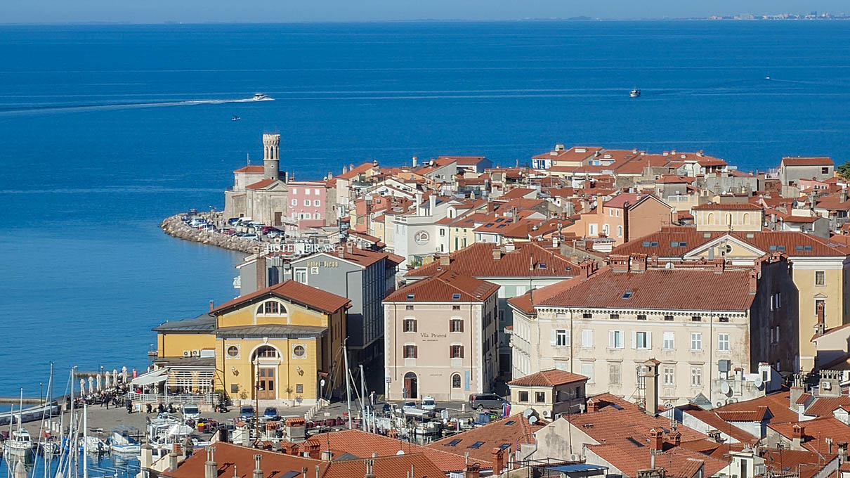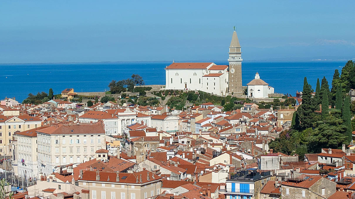 🌊 Piran óvárosi körséta kb. 4 km hosszan indul a kikötő és Tartini tér mellől felvezet a Szent György-templom harangtornyához a Punta világítótoronynál éri el a partot. Útközben Vihar-kapu, a vár, Tartini-ház, Tengerkapu és a kolostor udvara mind útba eső látnivalók 🇸🇮
