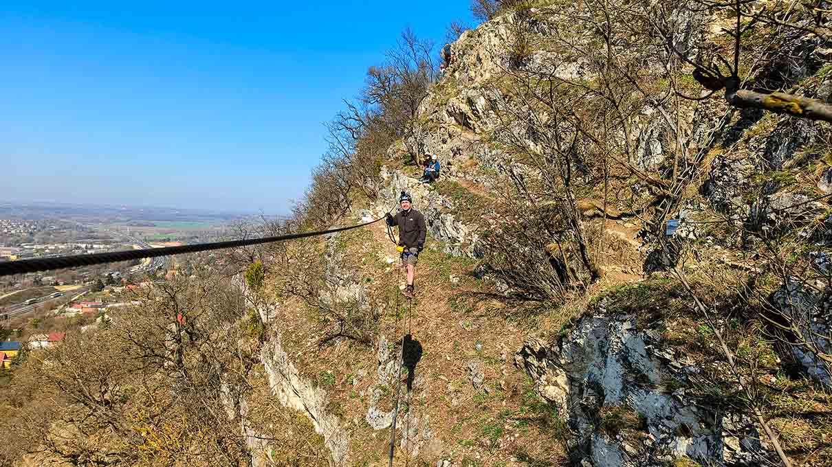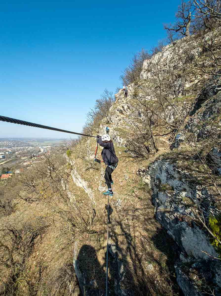 🔗 A tatabányai „DÖMDÖDÖM” via ferrata a Gerecsében, a Turul alatti Kő-hegy oldalán futó B nehézségű pálya.