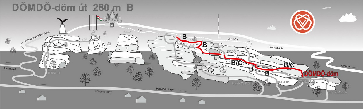 🔗 A tatabányai „DÖMDÖDÖM” via ferrata B nehézségű út, létrákkal, rövid traverzekkel és kitettebb sziklarészekkel. A Turul alatti falon futó pálya gyorsan mászható, mégis látványos szakaszokat kínál, miközben szép kilátás nyílik Tatabányára és a Gerecse dombjaira 🇭🇺