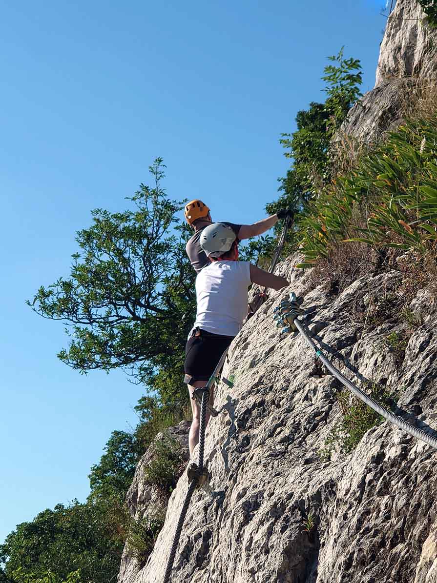🔗 A tatabányai „Hét Vezér” via ferrata D nehézségű, vietnámi hidakkal, rövid áthajlásokkal és kitettebb részekkel. Komoly karerőt igényel az elején a belépőnél és a traverzeknél átcsatoláskor, a Turul alatti sziklafalon látványos mélységgel és panorámával! 🇭🇺