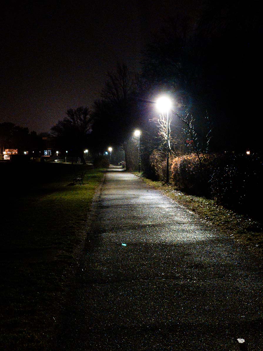 A körút mentén váltakoznak a kivilágított városi szakaszok és az árnyas, fás részek; a Tófarok melletti ösvényeken és az erdősebb részeken teljes sötétség várható, itt különösen látványosak a tó tükröződő fényei 📸