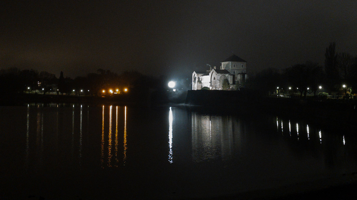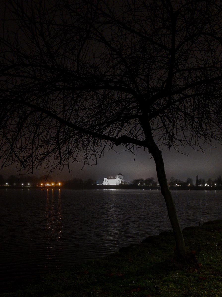 🌙 Esti világítós körtúra a Tatai Öreg-tó körül, vízparti sétányokon, parkos részeken és egy hosszabb sötét erdős szakaszon vezetve.